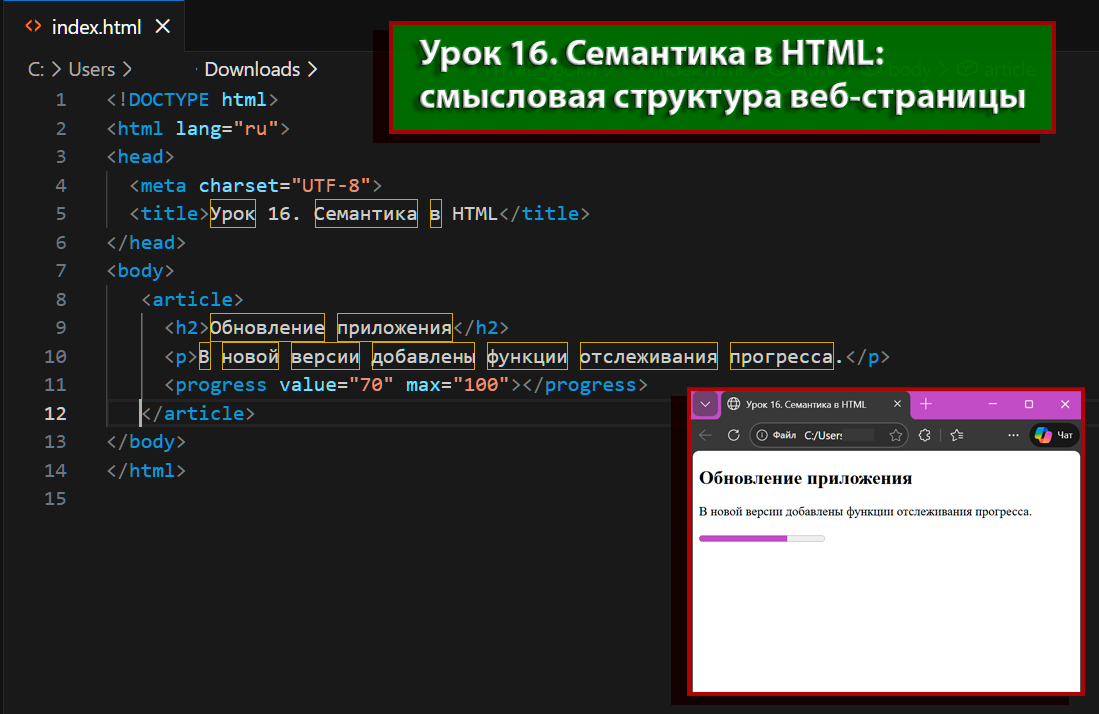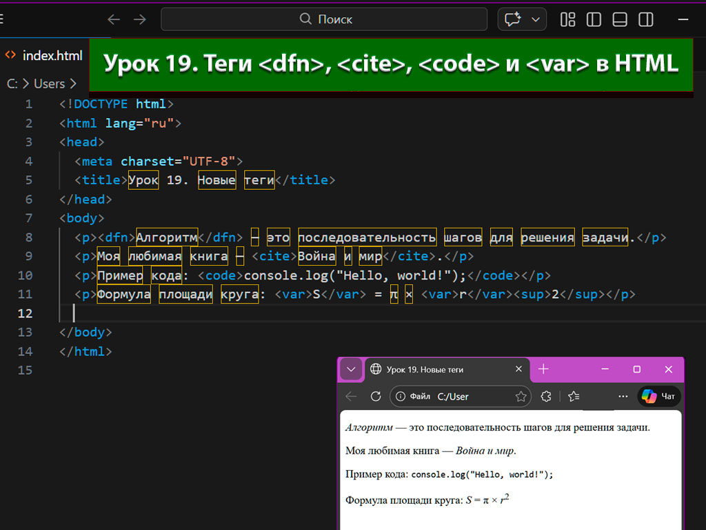 В этом уроке мы рассмотрим четыре таких элемента: dfn, cite, code и var. Они делают документ более понятным как для людей, так и для машин.